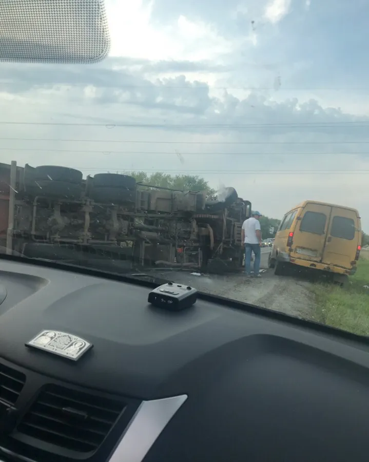 Под Рязанью из-за ДТП перевернулся КамАЗ
