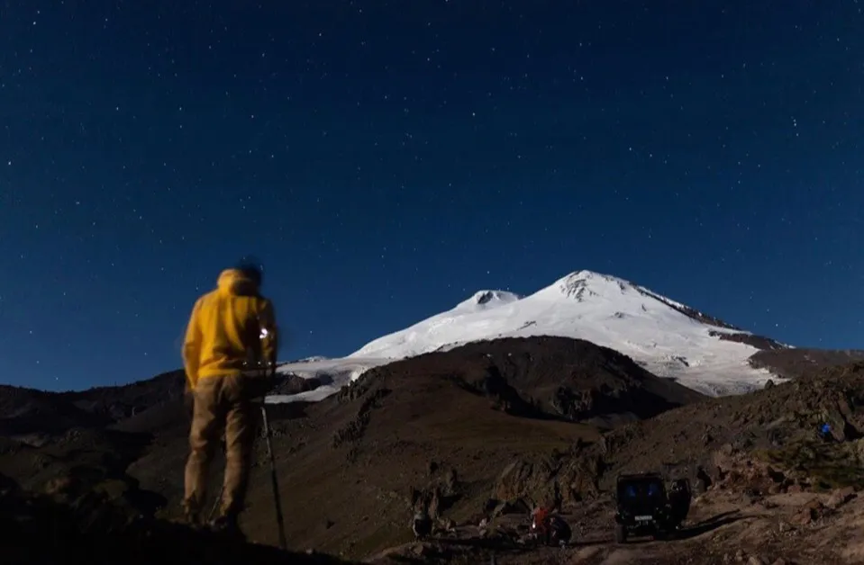Наша следующая остановка была на поляне Эмануэля , там мы разбили лагерь у подножья Эльбруса на высоте 2500 метров , прогулялись, поужинали, стали дожидаться ночи для съёмки звездного неба над самой высокой горой Европы. Вот он день без интернета!