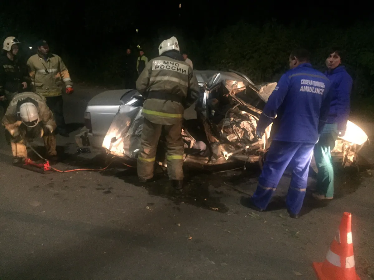По словам очевидцев, водитель на "Daewoo Nexia" не справился с управлением, наехал на дорожного работника и врезался в дерево. В результате аварии погибли два человека, троих увезли в больницу. Виновник ДТП скрылся.