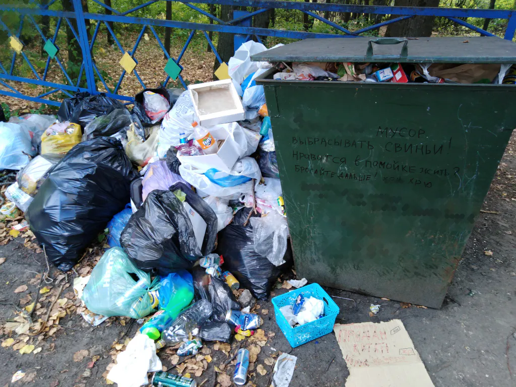 -Крик души, по другому не скажешь. Поставили у нас в Рязанском районе в селе Подвязье мусорный контейнер при входе в парк, чтобы мусор не там выкидывали, а в положенное место. Спасибо конечно, мы только за. Но по какой-то причине мусор не вывозят неделями. Люди, живущие рядом с парком, выбрасывают мусор туда или кладут рядом с контейнером, потому что тот забит. Хотя для такого мусора есть в посёлке отдельный контейнер, который чаще вывозят. Хорошо сейчас стоит не жаркая погода, а то пахло бы ужасно. А маленькие дети и все жители должны этим дышать. Администрации все равно, это очень мягко сказано. Их здание стоит практически напротив парка. Односельчане уже жаловались, писали просьбы, чтобы не кидали мусор из дома, на контейнере написали конкретно в этот раз, потому что уже не выносимо. Доходит до того, что подъезжает машина не из посёлка, открывается окно и, не выходя из транспорта, человек выкидывает мусор, тот разлетаются по ветру, окно закрывается и машина уезжает. Что ж за свиньи такие. Просто уже невыносимо.