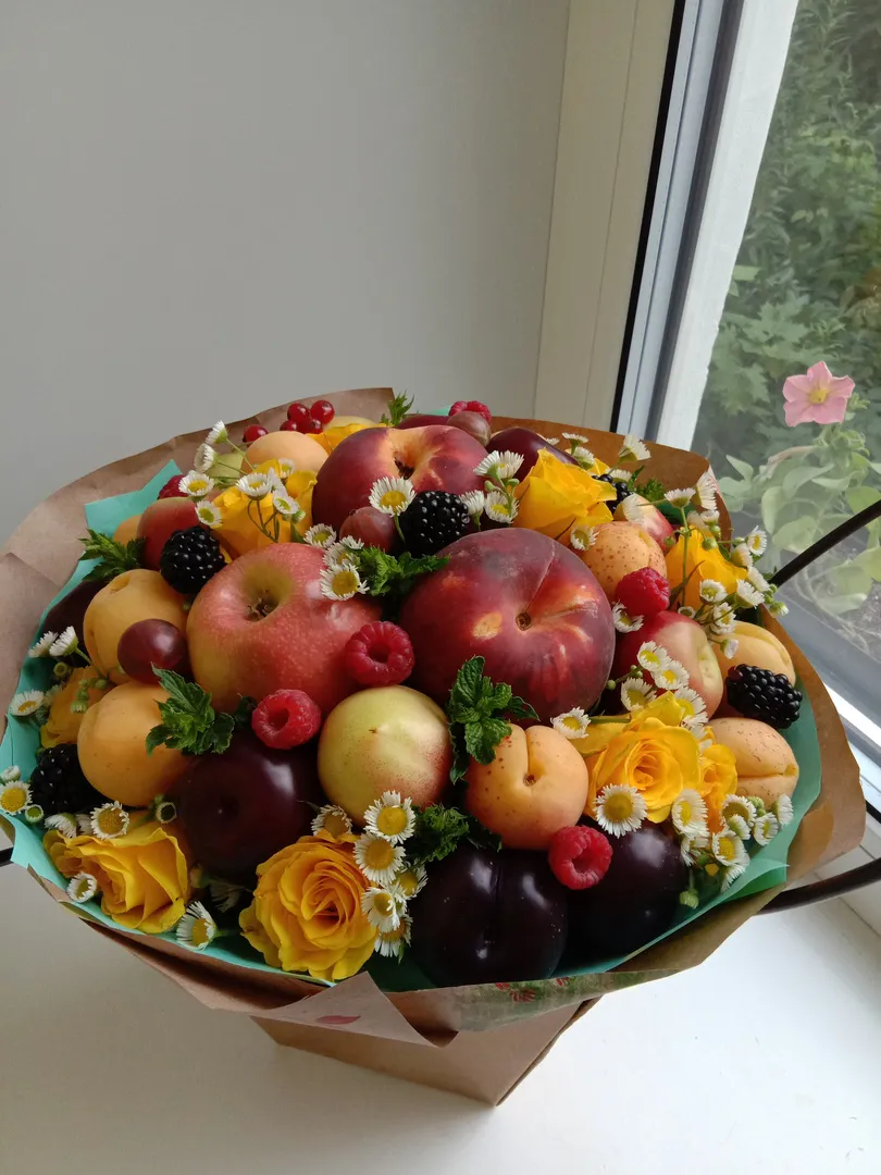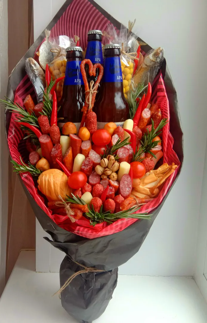 Съедобные букеты - это новый тренд во флористике, который очень быстро набирает популярность. Яркие и вкусные композиции подойдут для тех, кто любит необычные и практичные сюрпризы. Положить в такой букет можно что угодно - конфеты, клубнику, виноград, яблоки и груши, овощи, морепродукты и различные виды сыров. Композицией можно не только любоваться, но и вкусно полакомиться или угостить гостей. Главное, что букет подойдет для любого возраста и пола: ягодной композицей можно удивить любимую бабушку, а необычный букет из морепродуктов подарить папе.