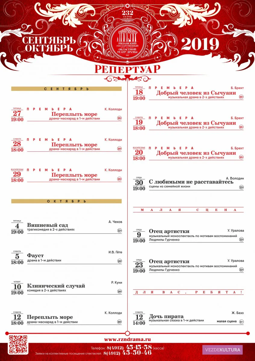 Театральная афиша на сентябрь: какие спектакли могут посмотреть рязанцы