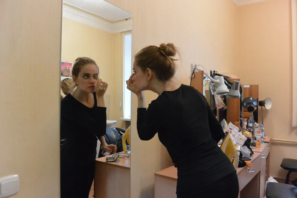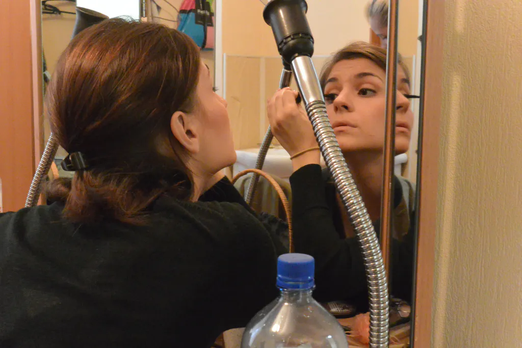 И все это – в свете прожекторов: закулисье – темный мир, освещающийся лишь несколькими лампами. Ярко лишь в коридоре и гримерках, где хорошее освещение очень важно.