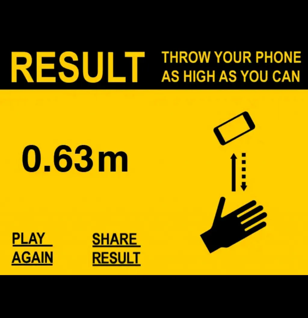 Дикое приложение, которое поставит под угрозу существования ваш смартфон. Все, что вам нужно делать - это включить приложение, подробсить телефон так высоко, как сможете, и поймать его. После этого вам покажут, на какую высоту поднялся смартфон. Развлечение интересное, особенно если у вас есть деньги на лишний телефон.