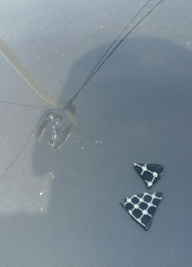 «Ехали с женой и сыном, как вдруг что-то сильно ударилось об крышу. Вылез – никого. На земле валялись осколки от пепельницы, а на крыше вмятина и царапина», - говорит Евгений.