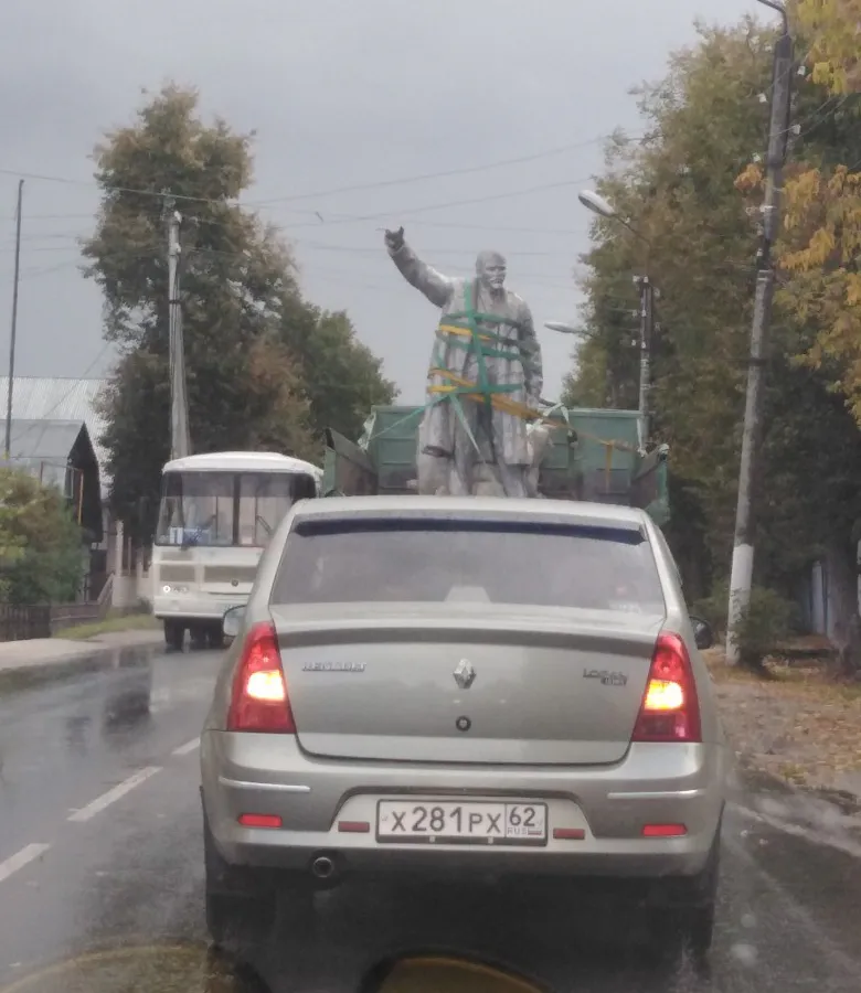 В Касимов едет новый памятник вождю мирового пролетариата. Пост с фотографией памятника Ленину, закрепленного в кузове грузовика, появился в социальных сетях. Обновить Ильича решили потому, что старое изваяние разрушилось в августе этого года.