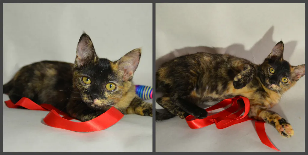 Котенку около трех месяцев. Как и все котята очень любит поиграть, ласковая до невозможности. Кушает хорошо, обработана от паразитов, в лоточек ходит на отлично. Трехцветные кошки приносят счастье в дом. Малышка подарит все тепло своего крохотного сердечка. Котенок очень послушный и добрый.