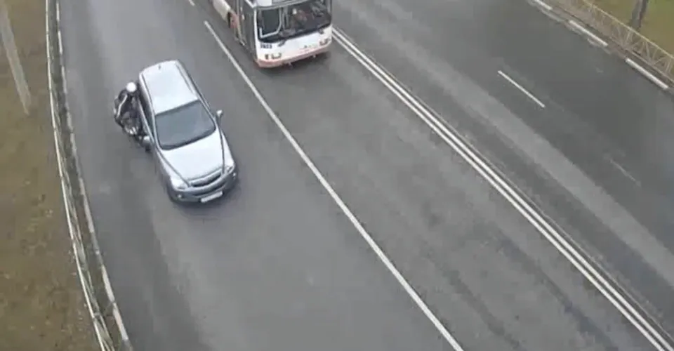 В пятницу утром на Московском шоссе произошла авария с участием мотоциклиста. Видео ДТП опубликовали в группе Вконтакте "Дороги Рязани".
