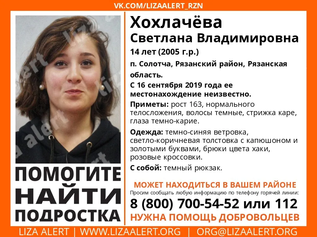 В Рязани волонтеры ищут пропавшую 14-летнюю девочку