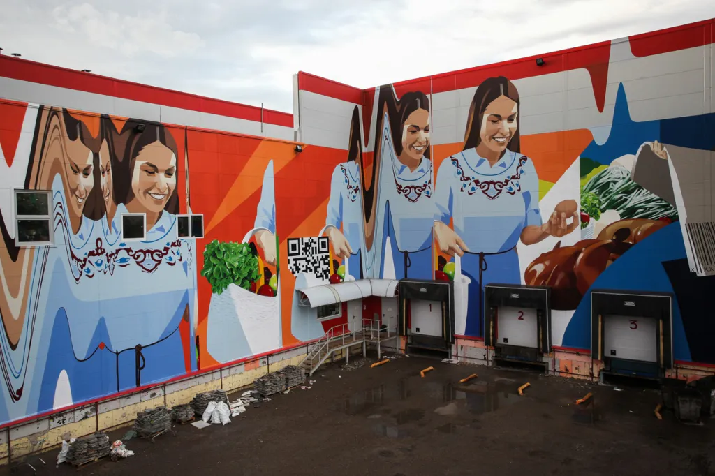 Рязанец Александр Демкин нарисовал в Татарстана граффити о современной торговле. Об этом он написал на своей странице Вконтакте. Демкин рассказал, что в этой работе он хотел показать, как меняются отношения между продавцом и покупателем: