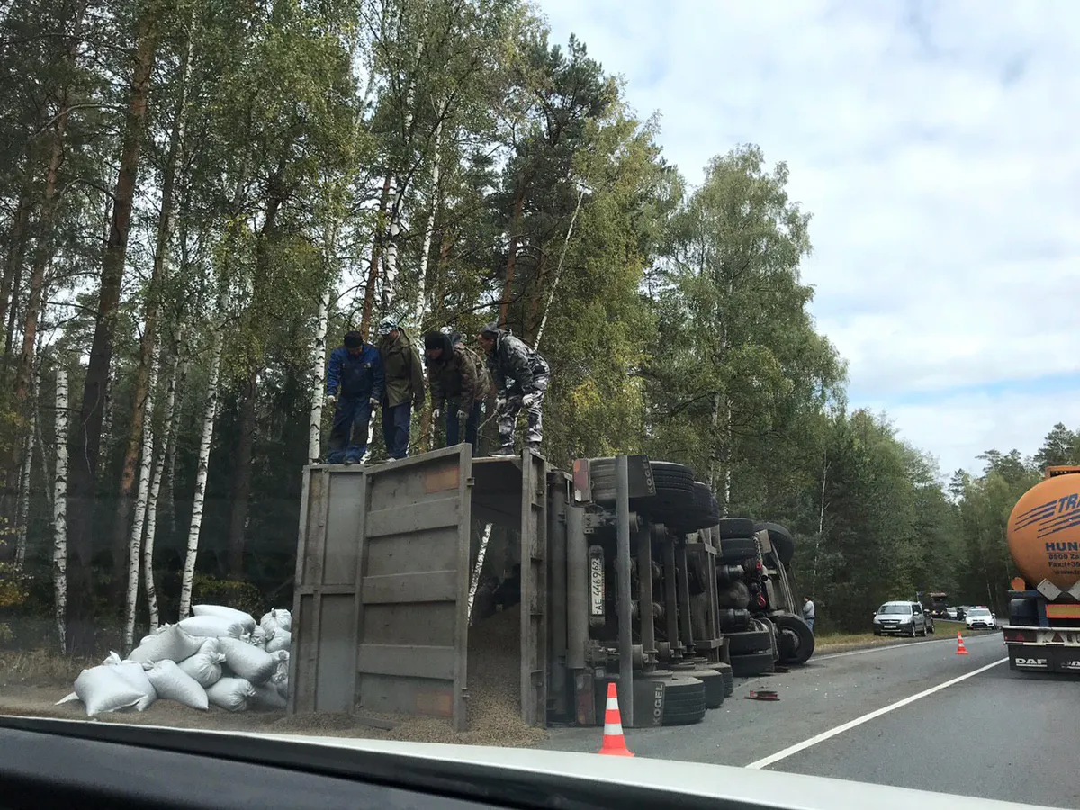 Под Рязанью перевернулась фура. Видео с места ДТП