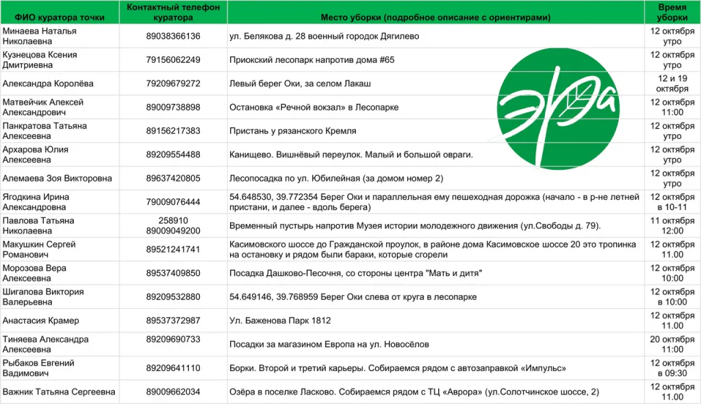 Можно выбрать любое место для уборки из таблицы. Сообщить об этом куратору точки. В назначенное время придти самому или с компанией друзей. Выбирай удобную одежду по погоде.