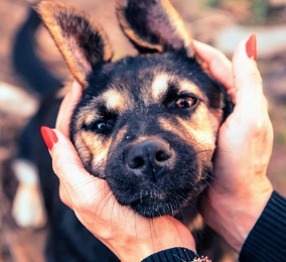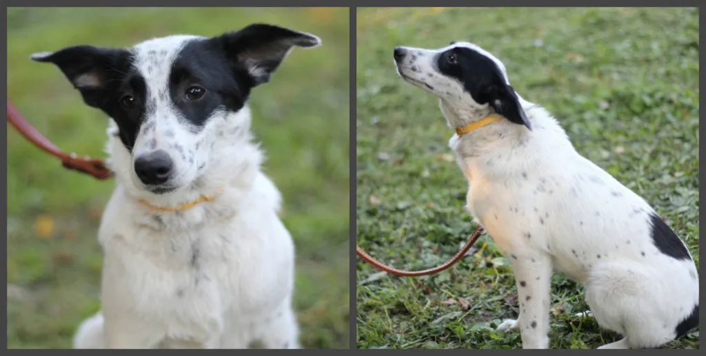 Дине примерно 8 месяцев, размером как две кошки, весит 8 кг. Девочка стерилизована, ласковая и послушная. С другими животными ладит хорошо. Собака приучена к выгулу, туалет строго на улице. Доставить Дину могут в любой район.