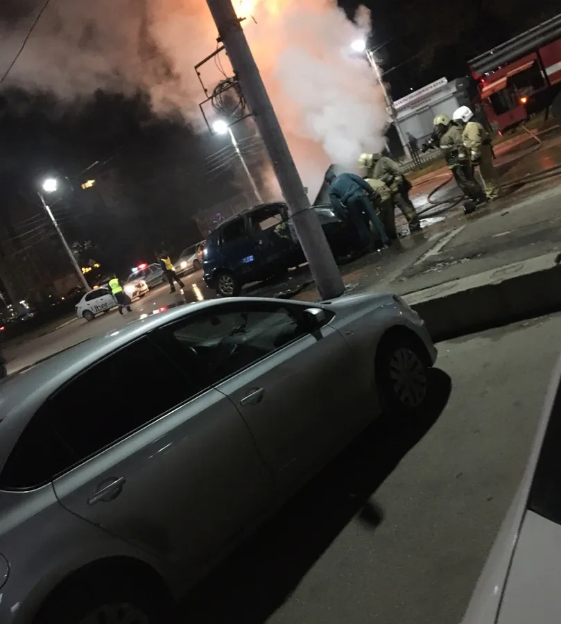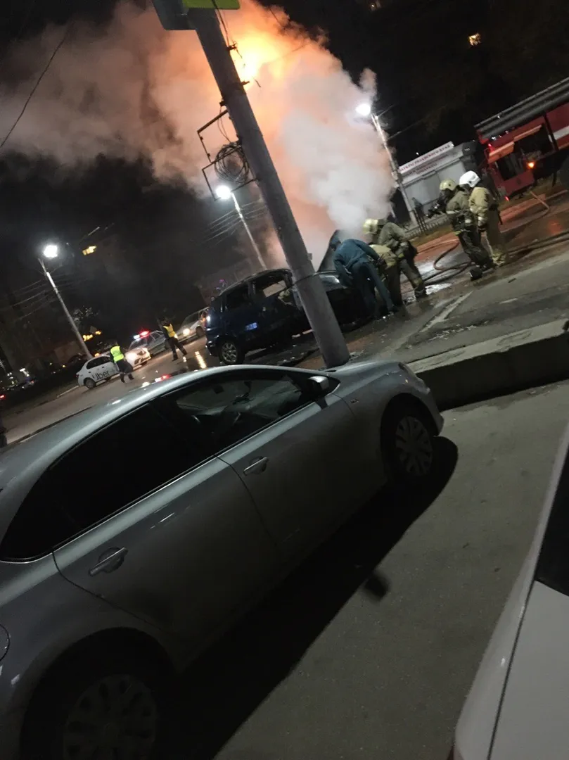 В Дашково-Песочне после ДТП загорелся кроссовер. Фотографии произошедшего опубликовали в группе Вконтакте "Подслушано у водителей Рязани".
