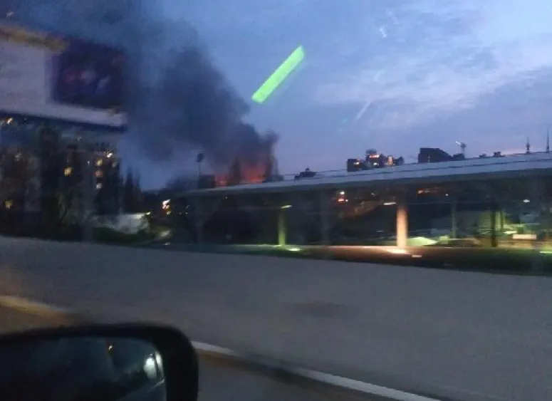 - Валит черный дым. Скорее всего, горит дом. Много пожарных автомобилей и полиция.