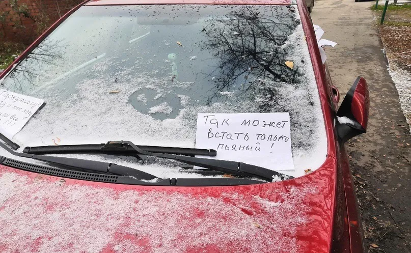 Свои действия неизвестные прокомментировали несколькими записками, приклеенными к автомобилю: "Так может встать только пьяный", "Тротуар для пешеходов, но не машин" и "Никому не подчиняютсь, пошли все на...".