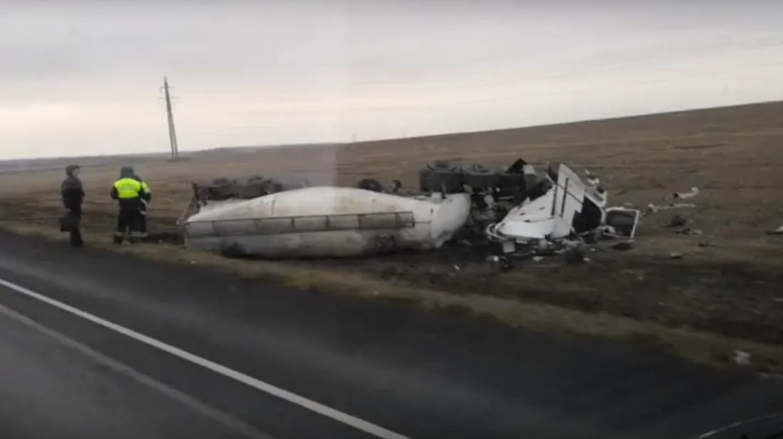 Под Рязанью фура улетела в кювет и развалилась на части