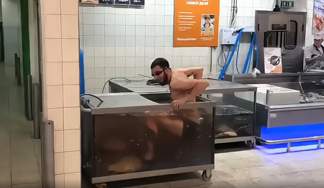 Вчера в новостных лентах Рязани мелькало видео, как рязанец искупался в аквариуме с живой рыбой, который установлен в гипермаркете "Глобус".