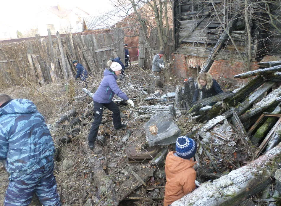 Волонтеры очистили территорию вокруг Дома Любомудрова