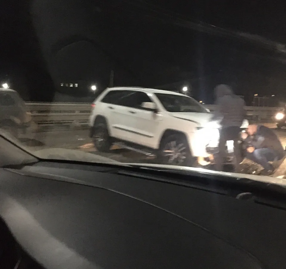На мосту на Спортивной столкнулись сразу три автомобиля
