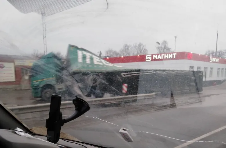 Утром в пятницу, 6 декабря в Путятине возле магазина Магнит грузовик попал в серьезное ДТП. У фуры перевернулся прицеп. Фото с места происшествия появилось в социальных сетях. Судя по фотографии сам тягач не получил механических повреждений. Прицеп же изогнуло "винтом".
