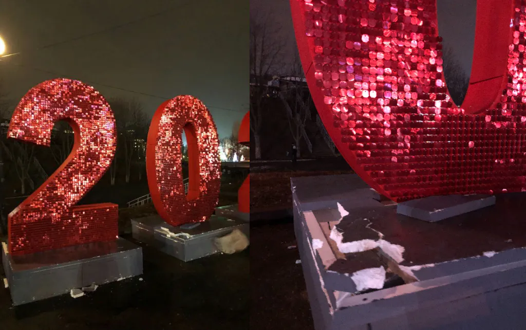 Одним из украшений города в рамках проекта Новогодней столицы стала огромная надпись "Рязань 2020" на Лыбедском бульваре. Пока еще короткая жизнь этого арт-объекта насыщена приключениями - например, его пытались очень спешно установить к открытию Новогодней столицы, но в итоге появились только буквы "Ряза". Теперь арт-объект разваливается по кускам - фото Pro Городу прислал читатель.