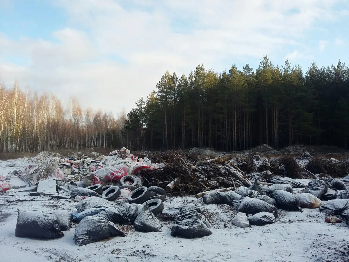 Сосновый лес на фотографиях выглядит отлично. А вот покрышки, поваленные стволы деревьев и мешки с мусором - не очень.