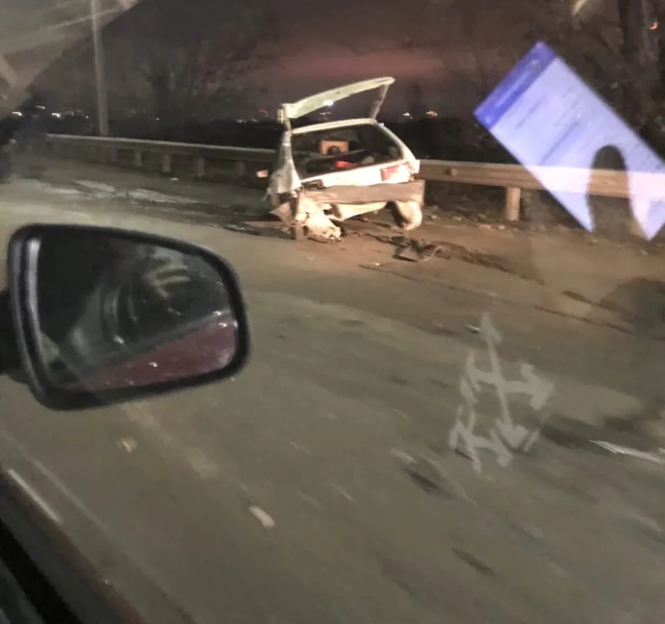 На Северной окружной жесткое ДТП: легковушка впечаталась в отбойник