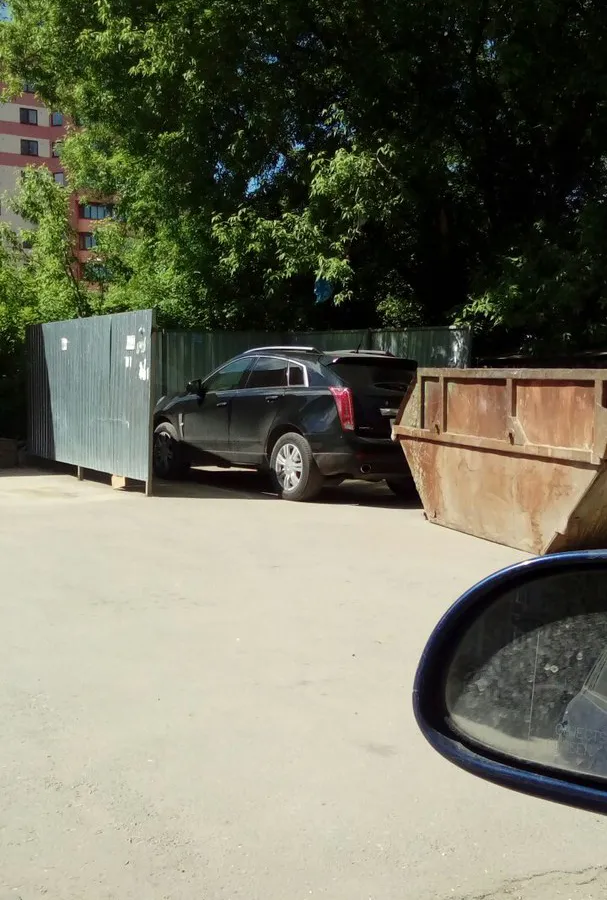 - Водители кладут покрышки и вешают цепочки, чтобы на свободное местечко не встал сосед, который вернулся домой раньше. И все же, такую картину - поставить машину на место контейнера для мусора, я вижу впервые.