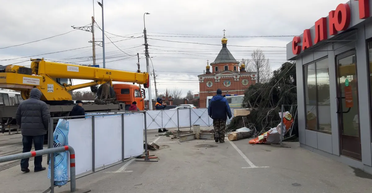 "Предупреждали же о ветре!" - фоторепортаж с места падения елки ТД "Барс"