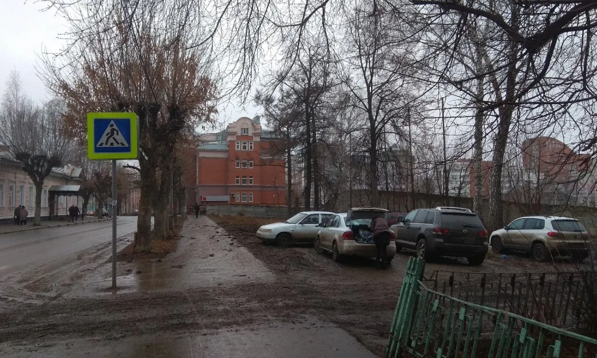 - С момента сноса дома на улице Свободы у детской областной больницы прошло уже больше года. Это место превратилось в стихийную стоянку. Всё это время жители района и директор Музея молодёжи жалуются. В этом году сделали дорожное полотно и тротуар. Тротуар зарос грязью. Земля - как пашня. Водители уже не стесняются и едут через тротуар. Каждый день там ходят дети в школу, и родители ведут детей в больницу по этой грязище! Это в центре Новогодней столицы, через дом от штаба правящей партии.
