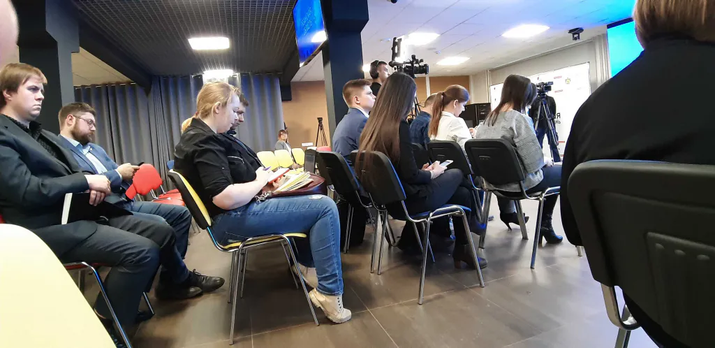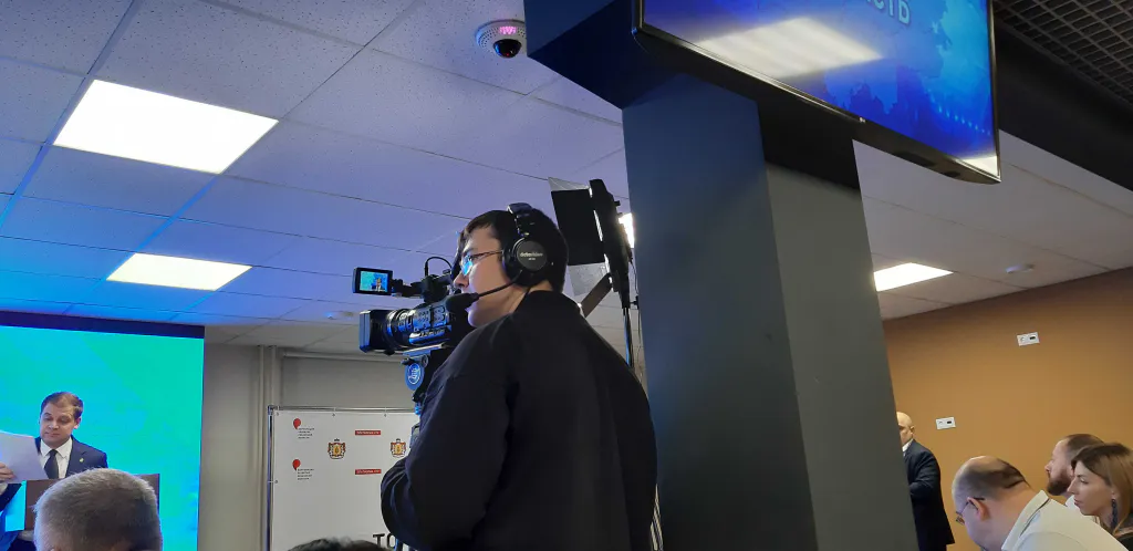 Вот оно, вот - увидим, что же волнует представителей СМИ и лидеров мнений! Мысленно рисуем себе бинго из предстоящих вопросов: экология, Новогодняя столица, транспорт, цифровизация. Задается первый вопрос про БСМП и соцобъекты - соседи рядом пока помалкивают, слушают. Любимов отчитывается.