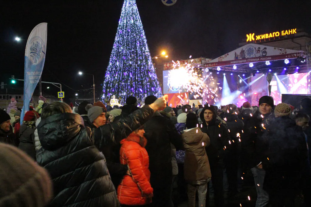В ночь с 31 декабря на 1 января площадь Ленина стала основной площадкой празднования Нового года. В центре города развернулось грандиозное шоу с фейерверками и концертом, которое посетили множество рязанцев. Программа началась в 11 часов вечера.