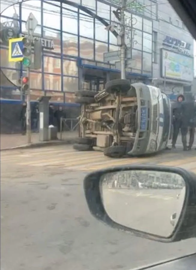 В центре Рязани произошло серьезное ДТП: перевернулась полицейская «ГАЗель»