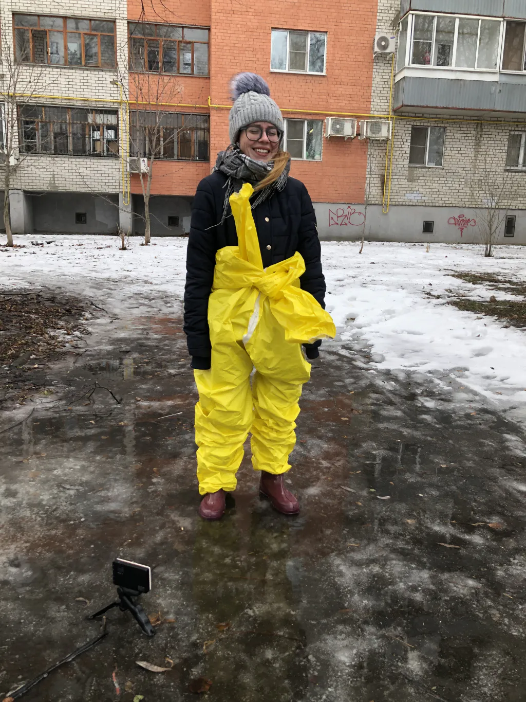 В итоге мы отправились на мокруху, вооружившись желтым непромокаемым костюмом, резиновыми сапогами, корабликом и фотоаппаратом. Заодно устроили развлечение соседям и прохожим. Чтобы добавить снимку больше реалистичности, фотограф просил активно прыгать в луже и брызгать. В общем, самым мокрым в итоге был именно он.