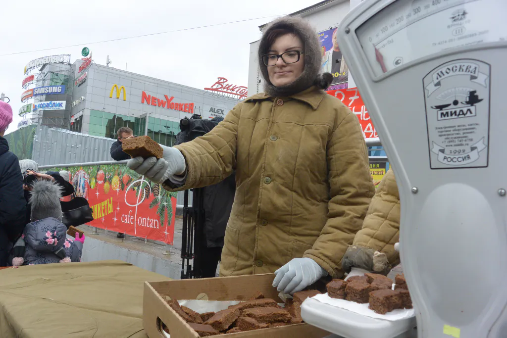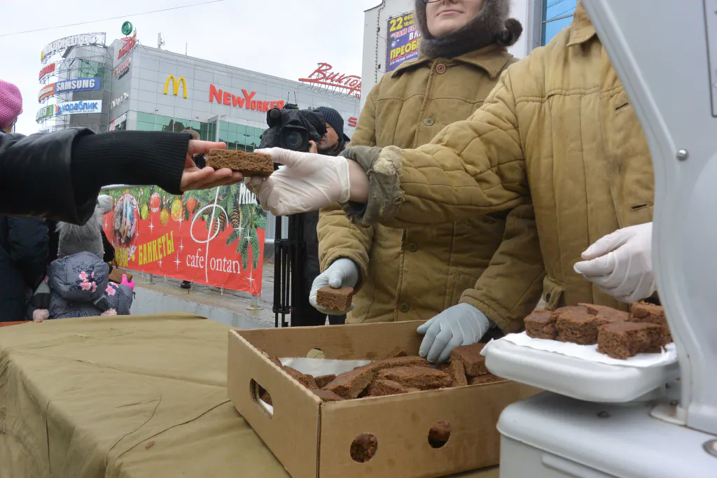 Акция "Блокадный хлеб": фоторепортаж с площади Победы