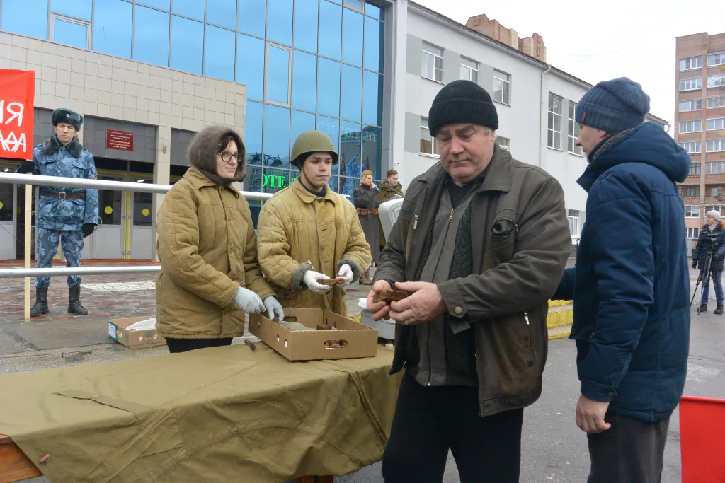 - Организовываем эту акцию уже пятый год в Рязани. Как всегда, готовимся заранее. Находим одежду, многопрофильный колледж помогает приготовить хлеб по рецептам блокадного Ленинграда. Собираем людей, зовем СМИ. Отрицательных реакций нет вообще, люди приходят, чтят память, вспоминают, пробуют хлеб. Отдают дань память всем защитникам блокадного Ленинграда, - Илья Кузнецов, волонтер "Победы.