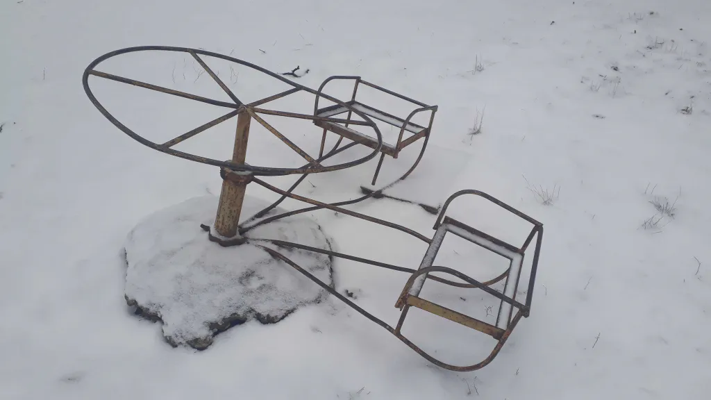 Предлагаем вам ощутить легкое чувство безнадежности и уныния: в рязанском дворе сфотографировали карусель, которая отлично подойдет в качестве декораций к фильму ужасов или триллеру. Фото в редакцию прислал народный корреспондент.