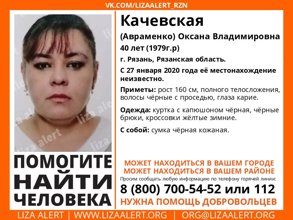 В Рязани ищут пропавшую 40-летнюю Оксану Качевскую. Об этом сообщили активисты поисково-спасательного отряда "Лиза Алерт".