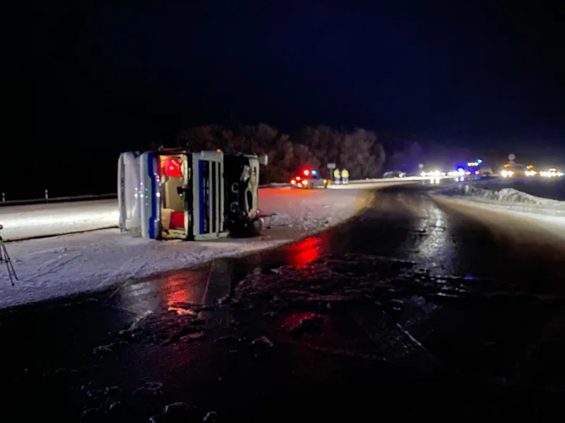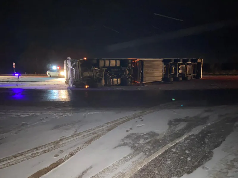 После столкновения тягач опрокинулся на бок, а легковой автомобиль получил повреждения, не подлежащие восстановлению. Проводится проверка.
