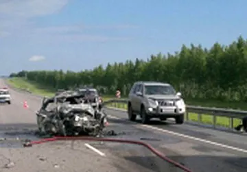 Сегодня, 21 мая, в пол восьмого утра на трассе М6 столкнулись автобус Mercedes и ВАЗ-2110. «Десятка» после лобового удара загорелась, водитель и пассажир погибли.