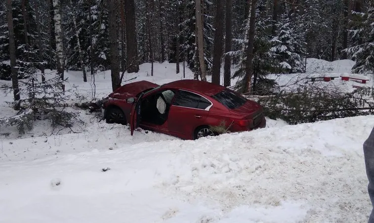 Судя по фотографиям, опубликованным в социальных сетях, иномарка серьезно пострадала. Автомобиль столкнулся с деревом. Передняя часть машины промята.