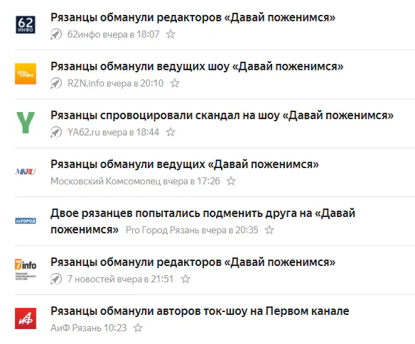 Рязанцы не в первый раз участвуют в федеральных ТВ-шоу, и этим уже никого не удивить. Но одному из последних выпусков программы «Давай поженимся» удалось это сделать. Выпуск с участием рязанского жениха активно обсуждается, а в заголовках в СМИ можно встретить такие выражения, как «рязанцы обманули» и «спровоцировали скандал». Суть проста – вместо заявленного жениха Дмитрия Чернышова в студию вышел его друг, который представился его именем. Но теперь два рязанца-участника прослыли обманщиками: рассказываем, как все было на самом деле.