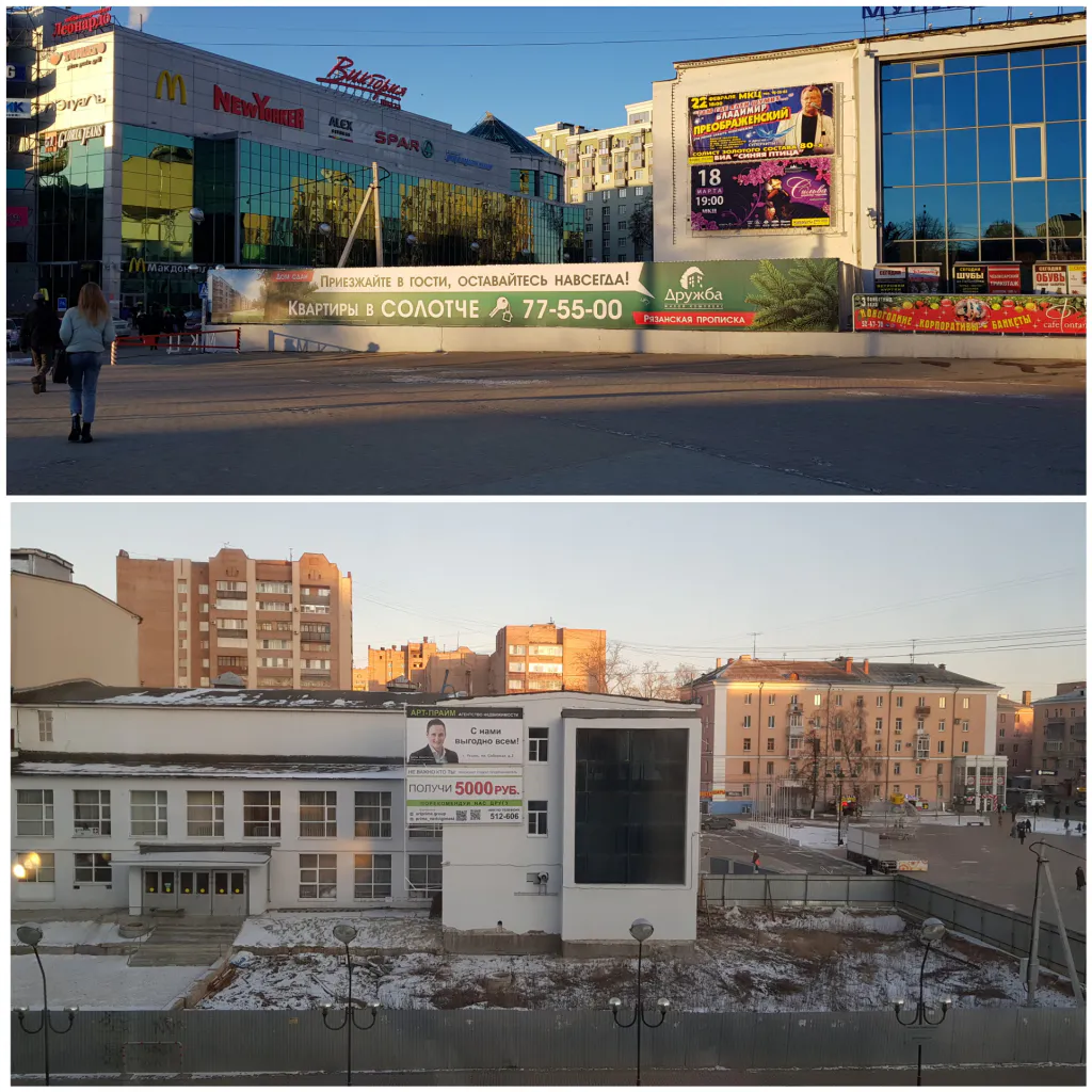 Проблема внешнего вида нашего города далеко не нова. Но “ПРО Город” все таки хочет еще раз затронуть эту тему и поговорить с рязанцами о внешнем виде нашей центральной площади “Победы”. Давайте мысленно переместимся в это место и прогуляемся от остановки до вокзала Рязань-1. Когда выходишь на остановке и идешь вдоль фонтана, который находится у ТЦ “Виктория Плаза”, взгляд упирается в скромное сооружение, которое прикрыто унылыми железными листами. Это главный городской фонтан, на минуточку.