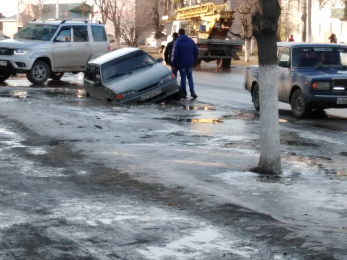 Рязанские ямы вышли на новый уровень: в Шилове машина провалилась под лед посреди улицы