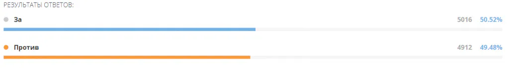 "Против" проголосовали 49,48% человек. Всего в опросе поучаствовали 9928 рязанцев.