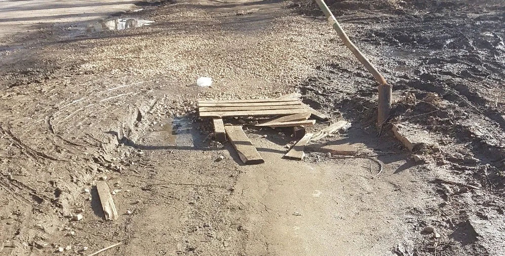 - В прошлом году осенью были жалобы на тротуар у детского сада №141, улица Яхонтова. После обращений всё, что сделали - это подсыпали щебня. Теперь опять приходится ходить по дощечкам, как в деревне!