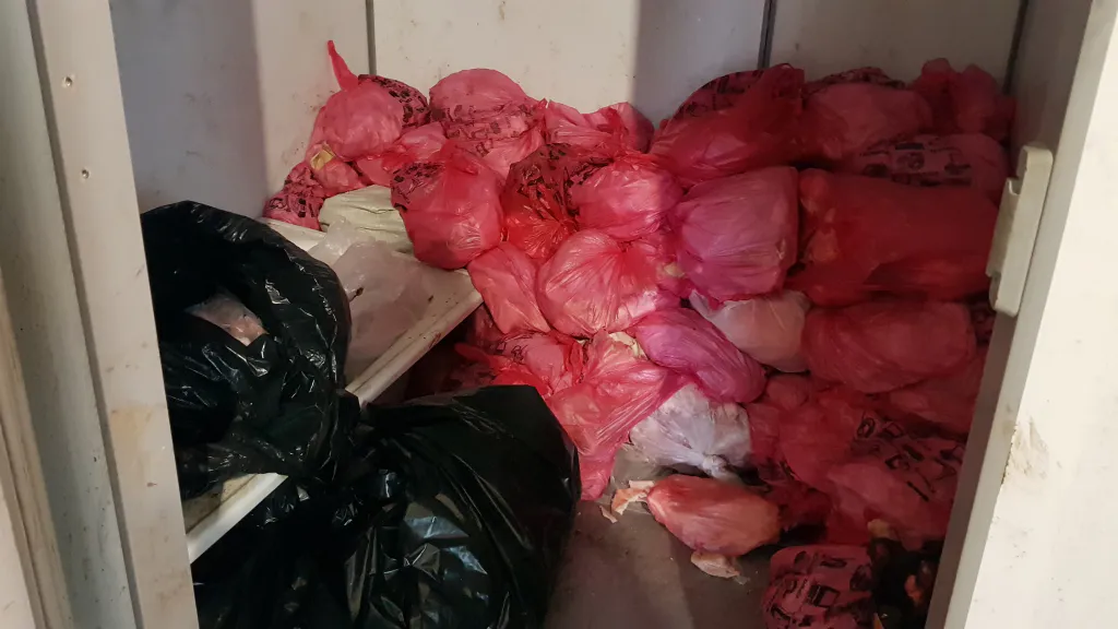 Сначала мы остановимся на злополучном холодильнике, в котором, как было видно на кадрах, хранились трупы собак. Директор питомника объяснила, что такая мера была предпринята из-за того, что Рязанский завод по утилизации санитарно-ветеринарных отходов был закрыт на 60 дней на проверку. Трупы собак утилизировать было негде. В то же время в питомнике сломался холодильник, и мясо, предназначенное для корма, испортилось. Работникам питомника пришлось временно поместить трупы собак и испорченную еду в один холодильник. После того, как завод начал утилизацию в штатном режиме, трупы утилизировали должным образом.