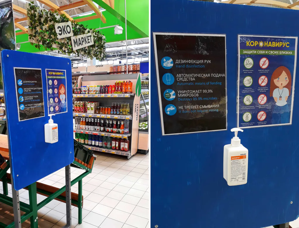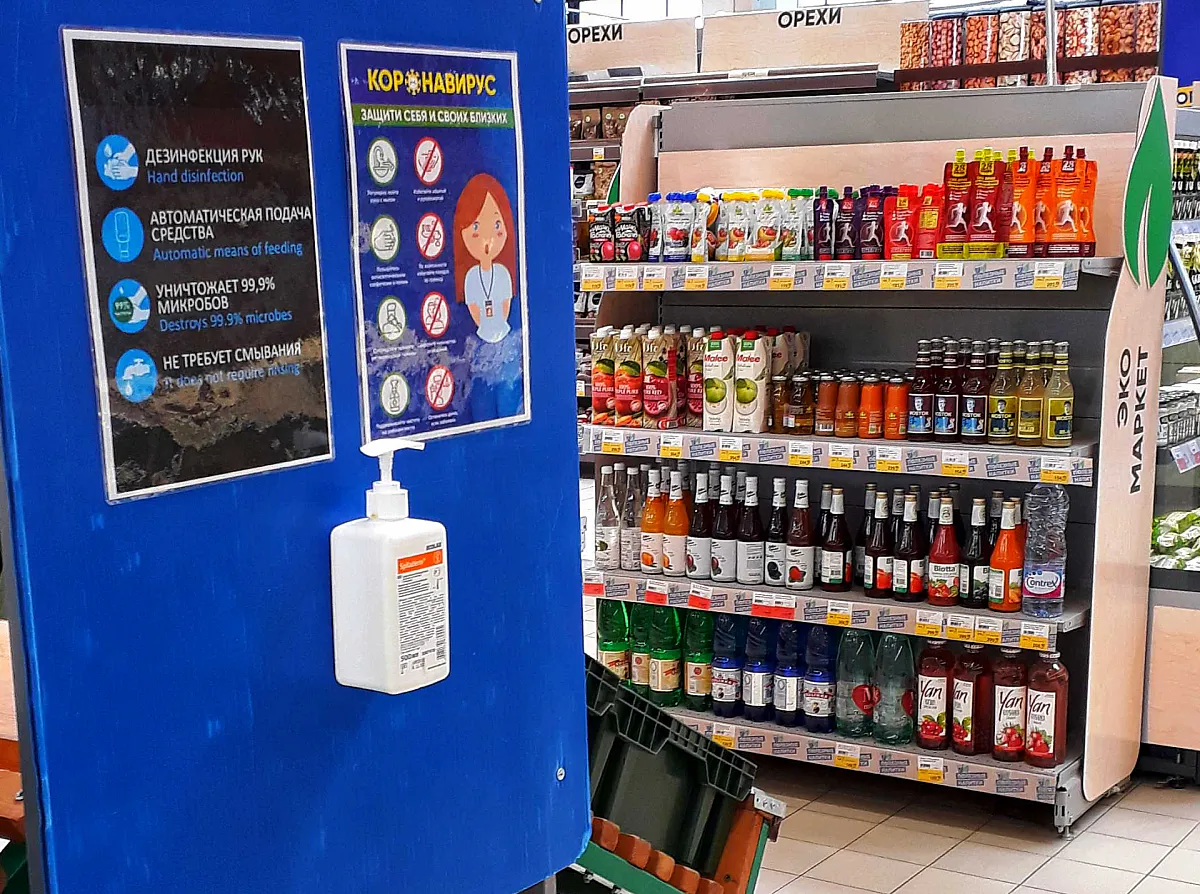 Как борются с коронавирусом в Рязани: в супермаркете повесили стенд с дезинфицирующим средством