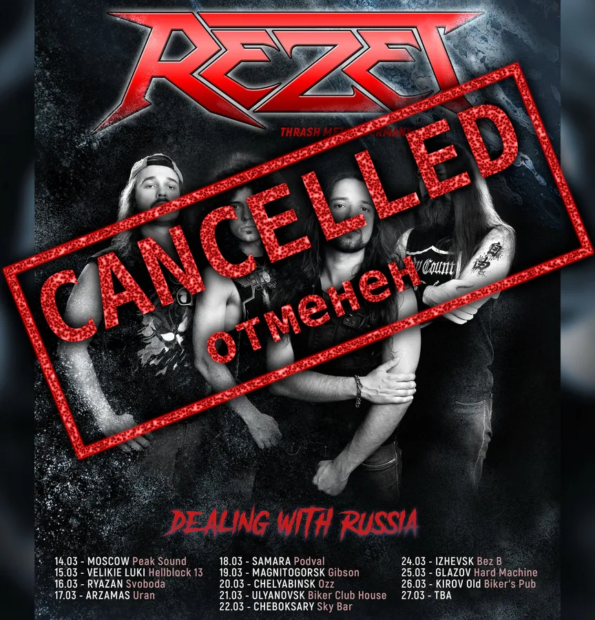 Концерт немецкой трэш-метал группы Rezet, который должен был состояться 16 марта в Рязани, отменён. Об этом сообщили организаторы в группе ВКонтакте.